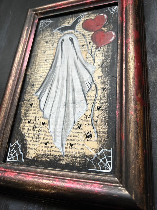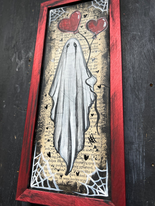 Original Framed Acrylic Painting - Heart Balloons Ghost