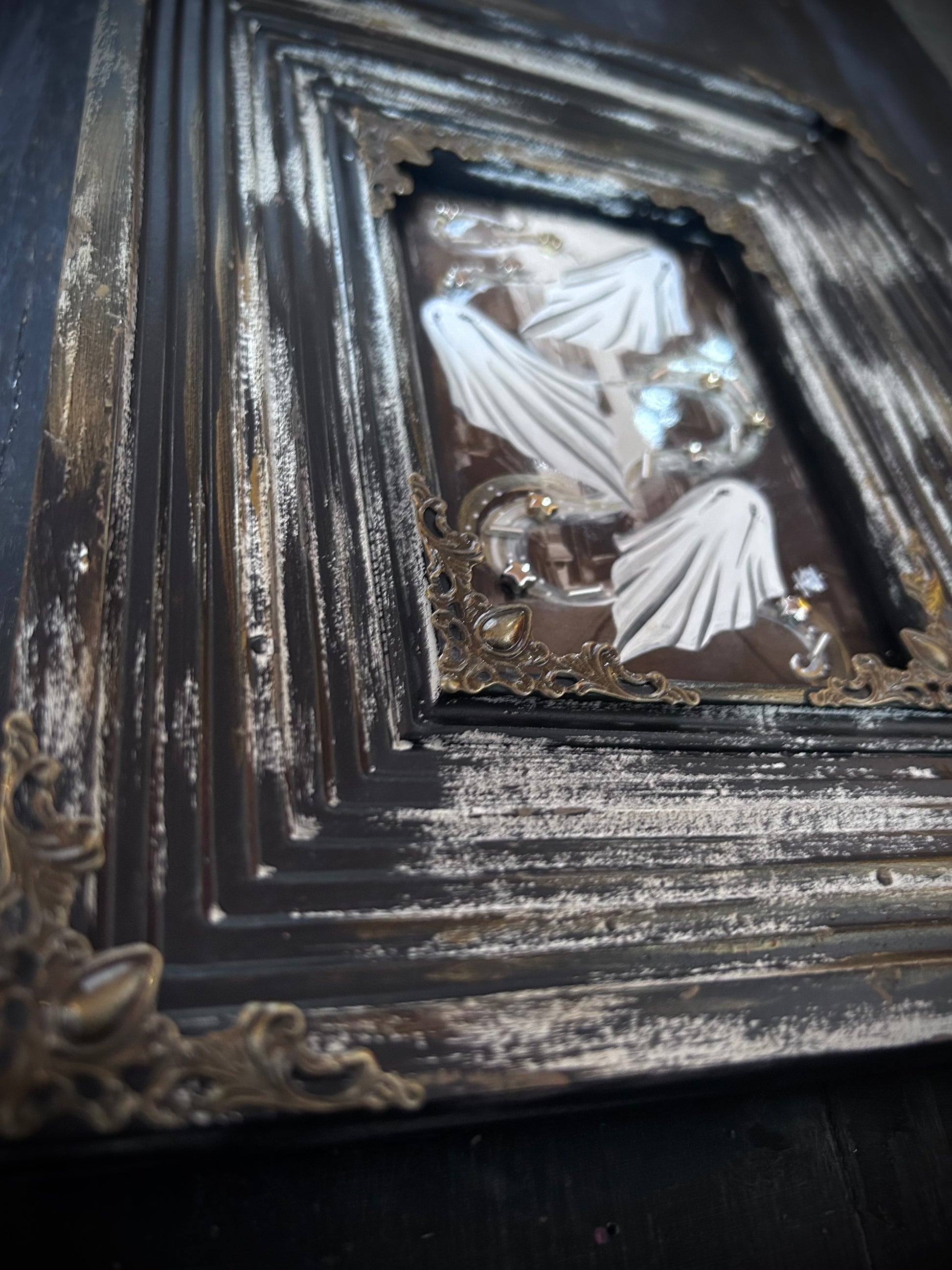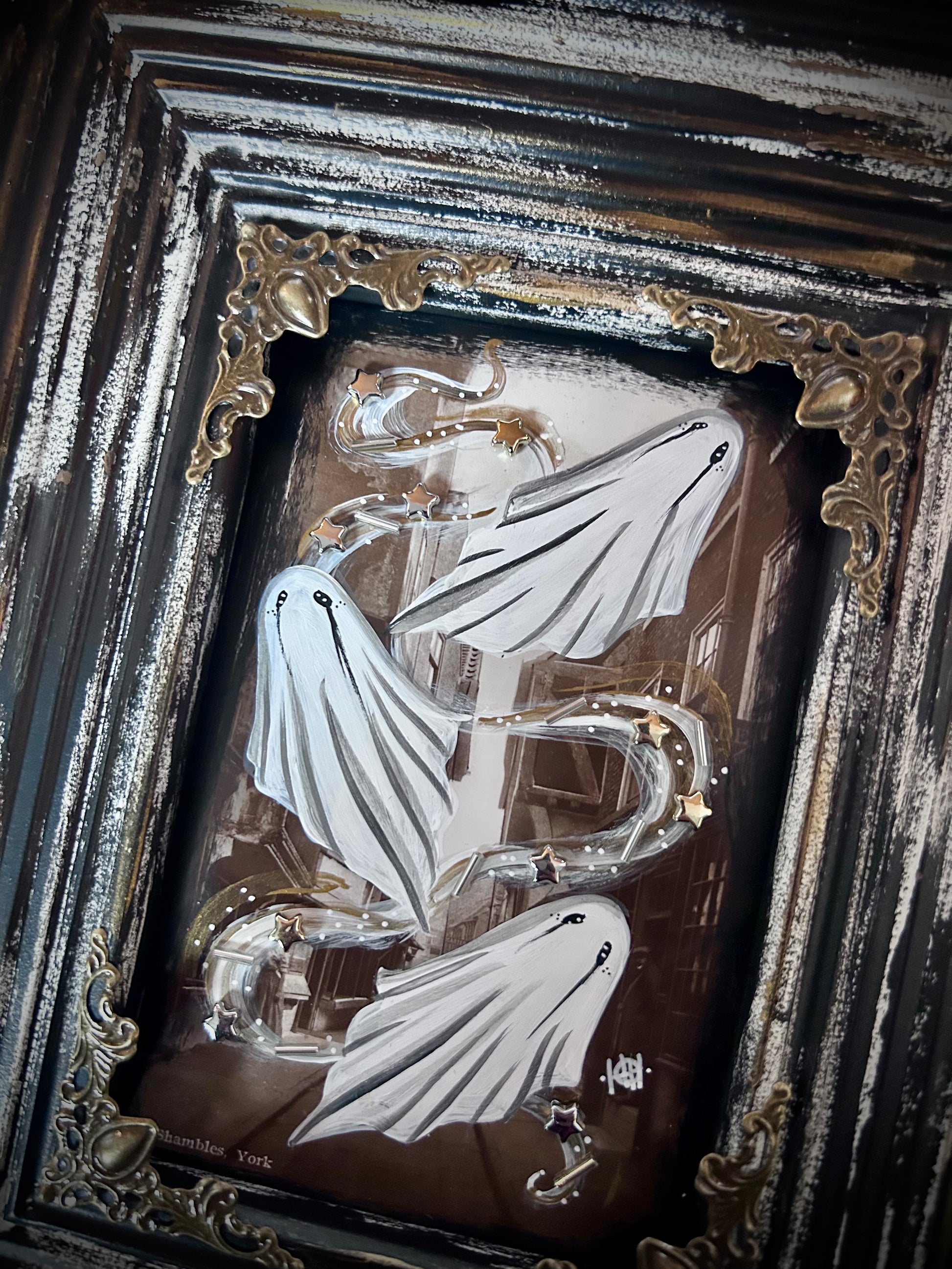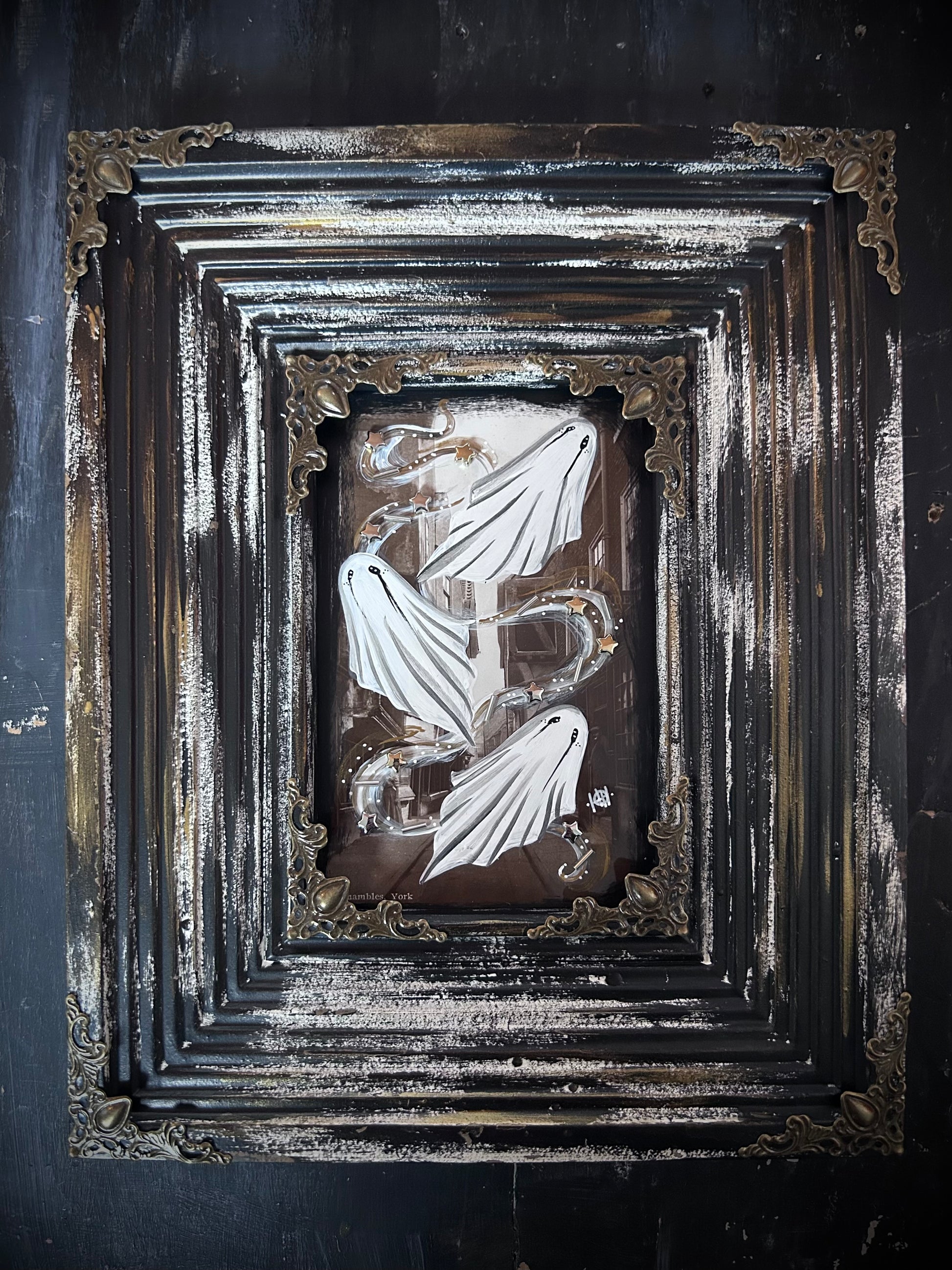 Here I have for sale an original postcard painting displayed in an upcycled and hand painted picture frame.