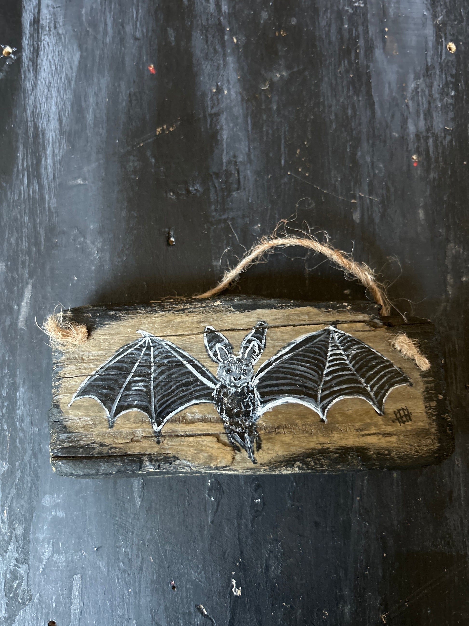 The piece measures approximately 13x5cm and comes with twine for hanging.