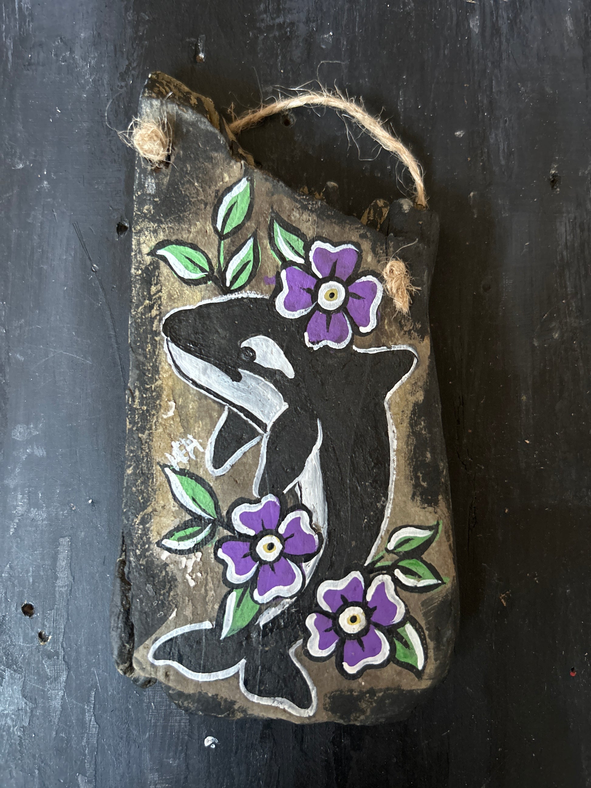 Here I have for sale an original painting on a piece of driftwood salvaged from a beach in Northumberland.