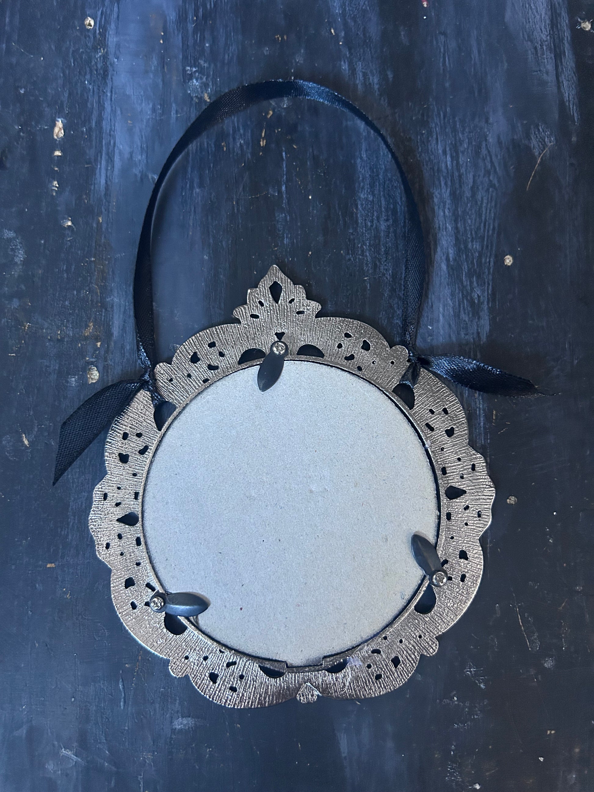 This painting comes with black ribbon for displaying on the wall and is approximately 13x13cm.