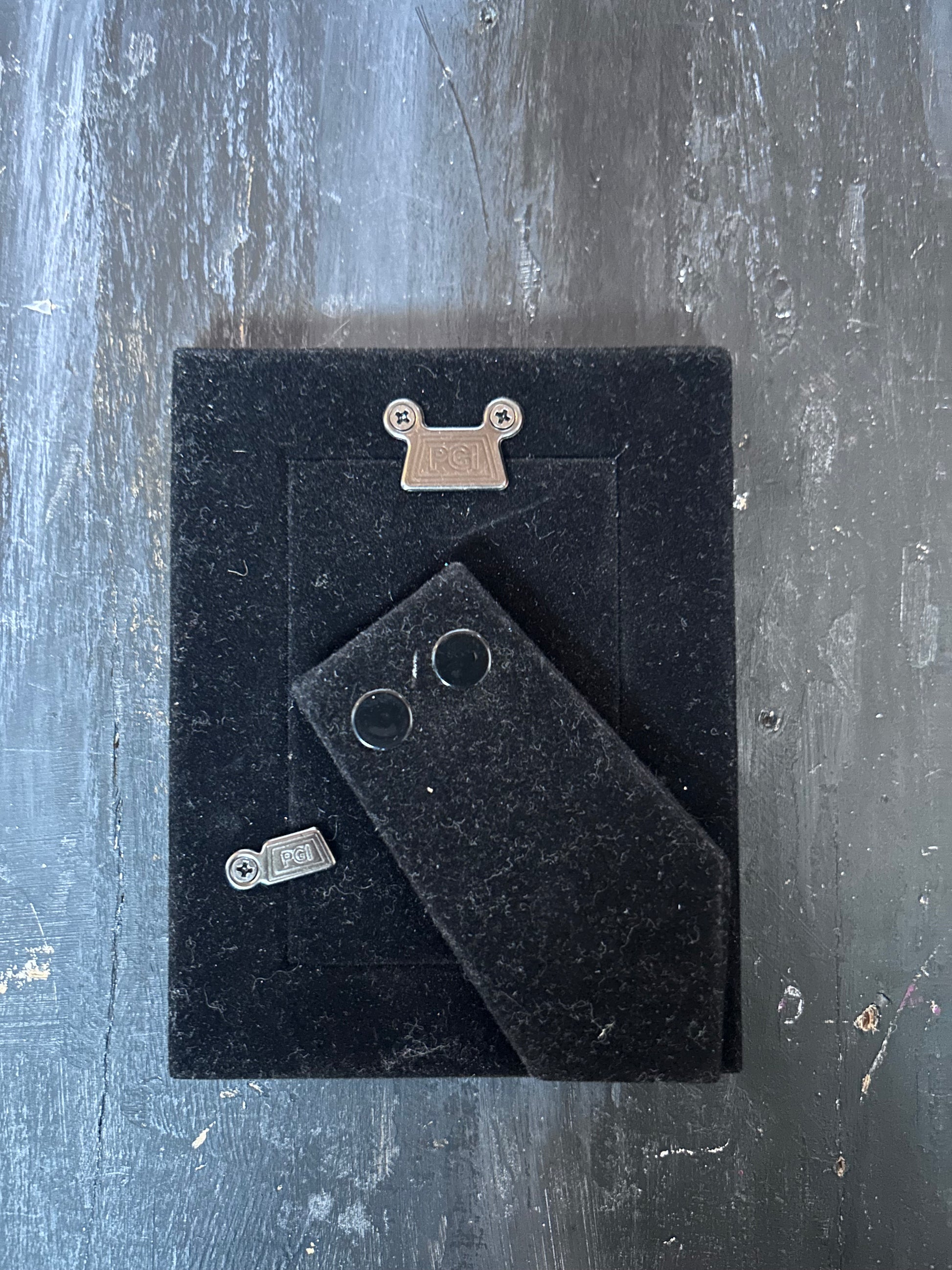 The frame measures approximately 8x12cm and comes with a picture stand on the reverse. Please note that this frame does not include glass.